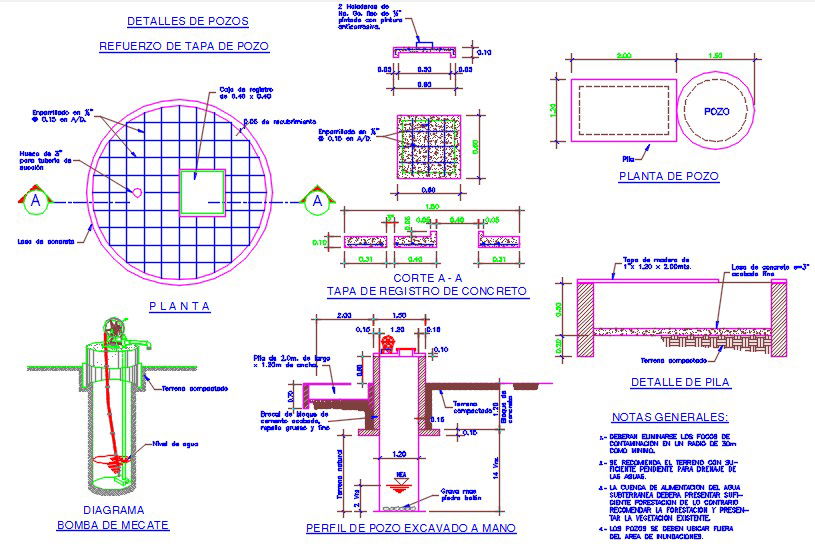 Structure Detail plan section and elevation of well .Structure detail view with specification detail, dimensions detail, reinforcement detail, steel bars size detail, section plan detail view etc.
