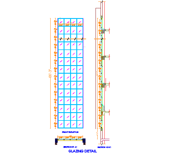 Glazing Plan with Elevation and Section Details DWG CAD Drawing
