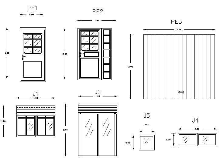 Door and window elevation detail dwg file