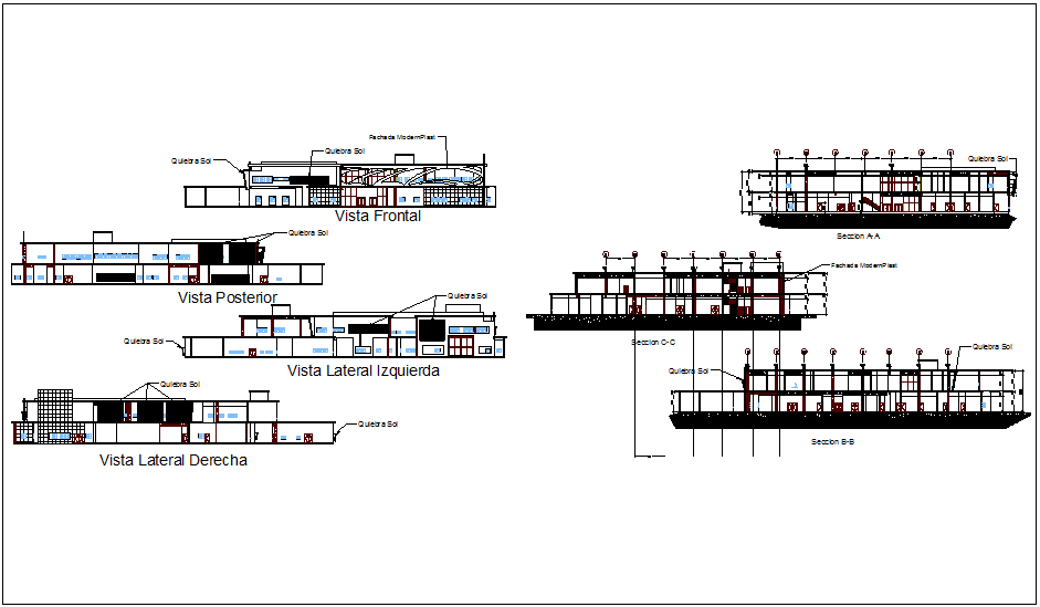 Salvador est ells project specialist hospital in cardiology Elevation and section view of cardiology hospital dwg file