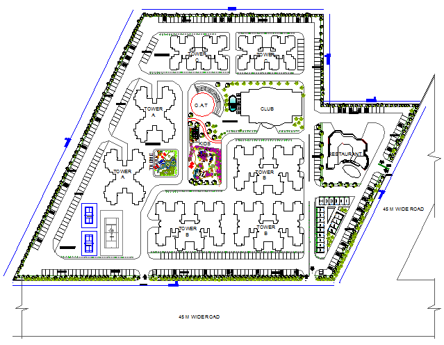 Landscaping housing layout detail dwg file, with tank detail, block naming detail, club detail, car parking detail, dimension detail, etc.
