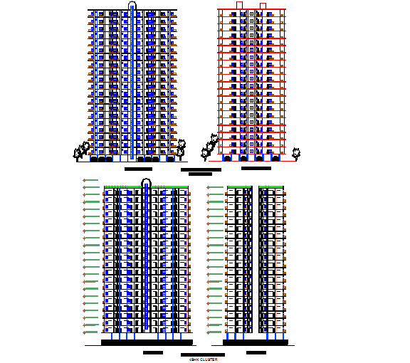 4 BHK tower A section apartment flat detail dwg file, including dimension detail, leveling detail, landscaping detail with plant and tree detail, parapet level detail etc.
