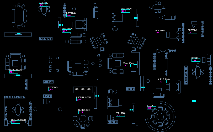 This AutoCAD DWG file provides house furniture blocks, including sofa sets, beds, tables, and storage units for residential and interior design projects.