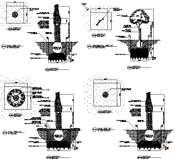 Plan and Section tree detail dwg file, including dimension detail, naming detail, underground detail with tree detail, etc.