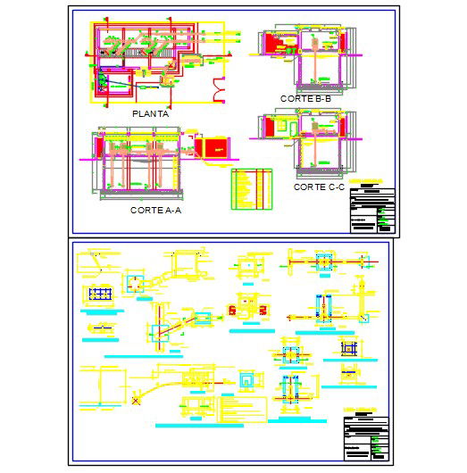 The sewer system and supply domiciliary water detail. Installation detail of Sewer system and supply domiciliary water with plan, section and detail description and dimensions.