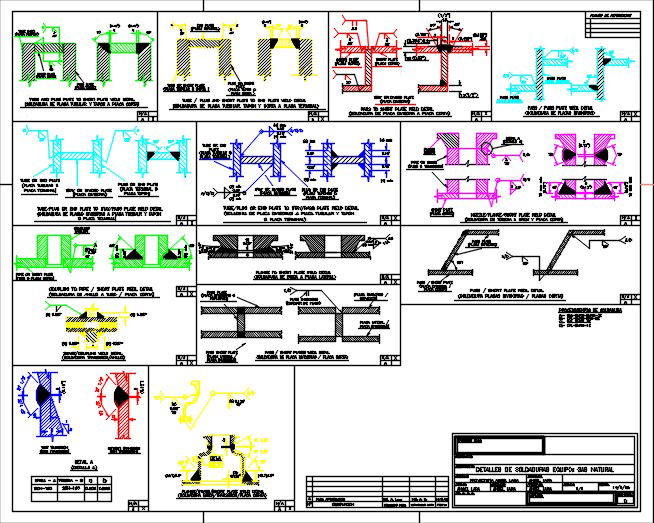 Weld map and description drawings. different type of detail like tube and plug plate to short plate weld detail,etc detail with section and plan with dimensions and labilling.