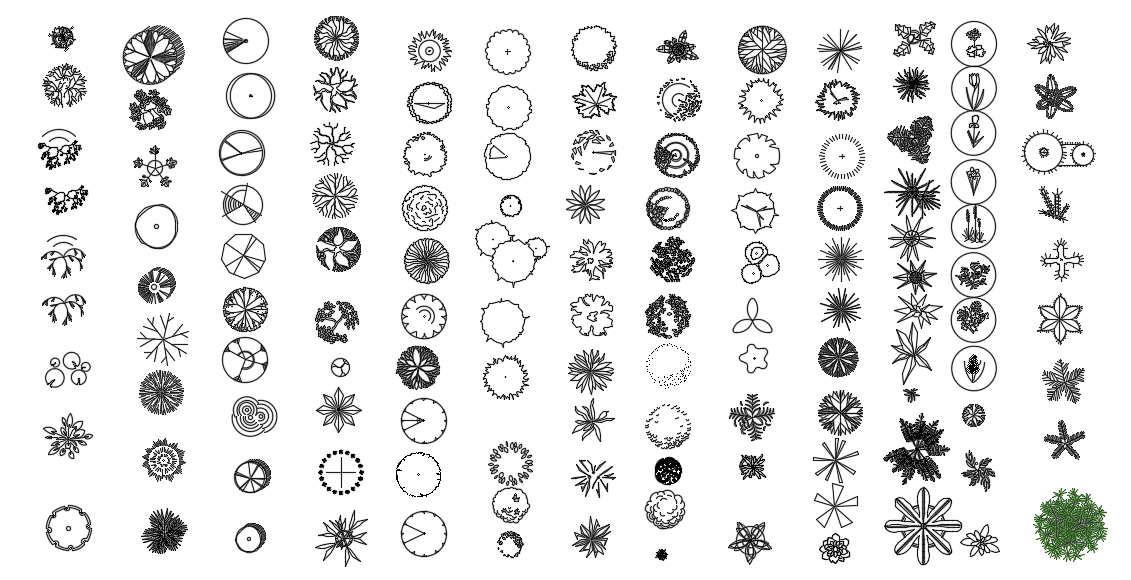 Trees top view dwg file.with 20above plant detail, small and long length tree detail etc.