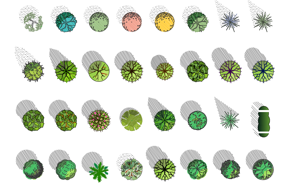Top View Trees with Shadows DWG File for Accurate CAD Landscape Plans