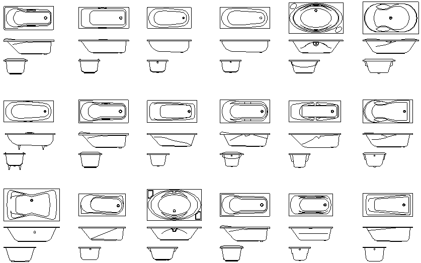 Bath tub detail dwg file, with different types of bath tub detail, etc.