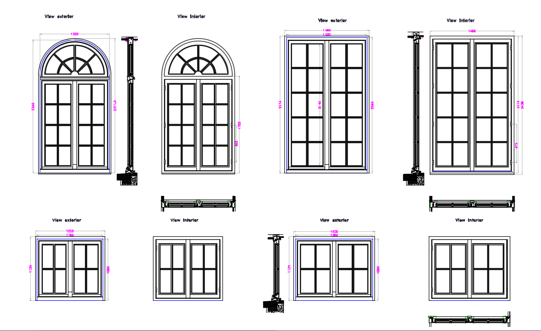 Windows plan elevation dwg file. 2 D detail dwg file, front elevation detail, left elevation detail, right elevation detail, back elevation detail, etc.