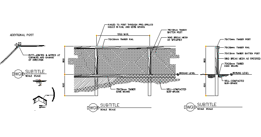 Wall section detail dwg file, with dimension detail, naming detail, bolt nut detail, 75x25mm piping detail, etc.