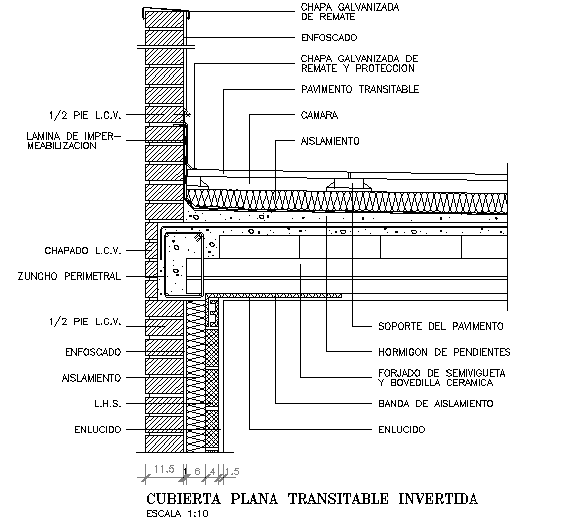 Flat Roof Design CAD Drawings with naming detail, dimension detail, reinfroment detail, concert mortar detail.