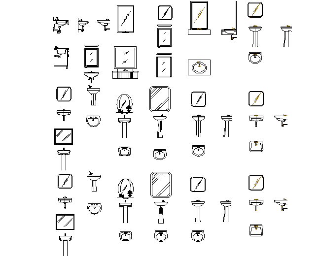 Download Free Mirror Bath Room Design In DWG File which shows the sink details, mirror design, front view details.