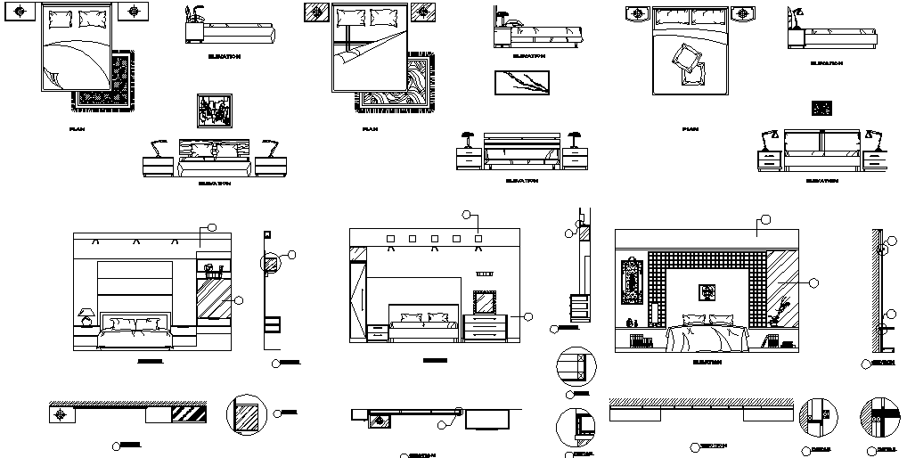 Download Bed Cad Block In DWG Which shows bed design, section, elevation.