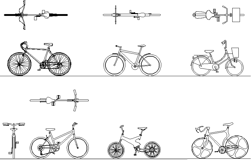 Free Bicycle view In AutoCAD Drawings which shows different types of bicycle design.