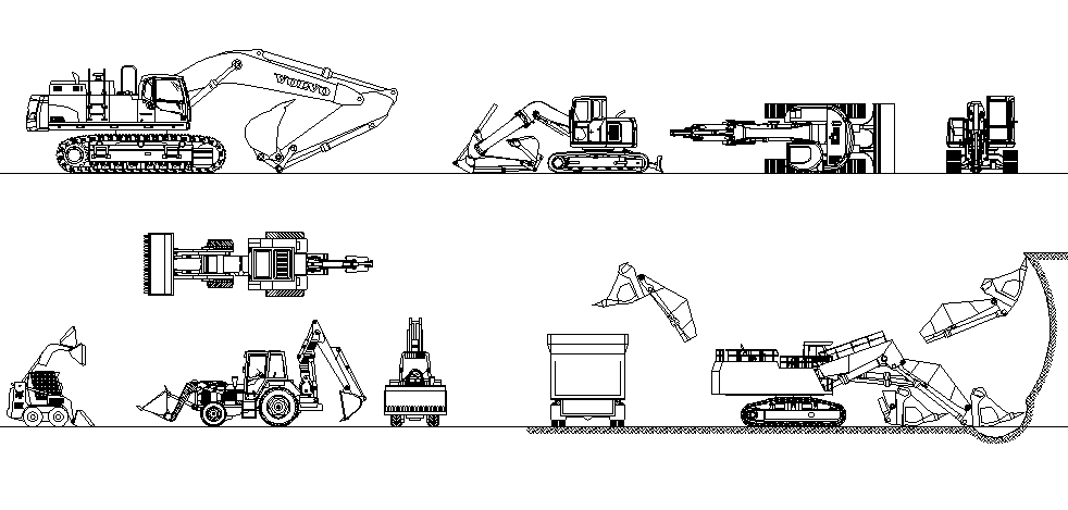 Construction Machine Design In DWG File which shows different views of construction machine.
