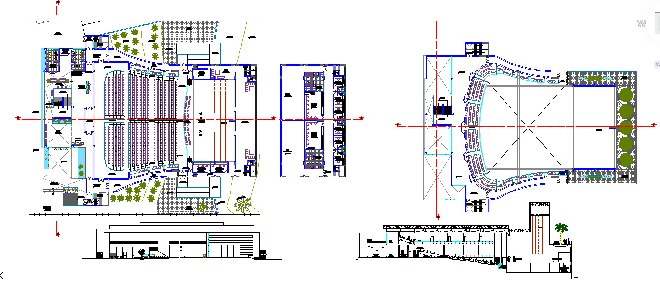 This multiplex design DWG showcases a complete cinema complex layout that can accommodate more than 500 people in multiple screening halls. The plan is designed to ensure comfort, visibility, and efficient crowd flow, providing a professional reference for theater and entertainment architecture. Each movie hall is carefully arranged with ample seating capacity, wide aisles, and optimized viewing angles for every audience member.