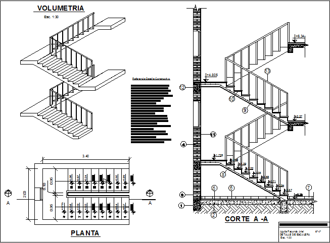 Stair Plan In DWG File which includes dimension detail, naming detail, tread and riser detail, hand reeling detail, specification detail.
