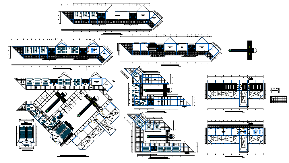 This school project design DWG provides a comprehensive architectural layout, including classroom arrangements, office spaces, furniture layout, and landscaping details. The plan covers all floors with detailed elevation drawings and presentation plans to showcase the complete structure. Every aspect of the design has been organized to optimize space usage, natural light, and accessibility, making it ideal for modern educational facilities.