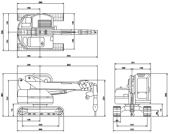 Crawler Crane In DWG File which includes front view detail, side view detail, back view detail, dimension detail, naming detail.
