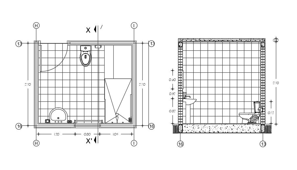 Bathroom Architectural Plans In AutoCAD Drawings which shows the bathroom design, water closet, water basin.