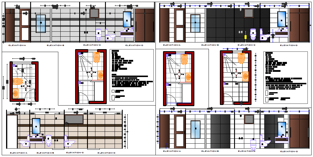 Bathroom and toilet detail DWG with layout plumbing and elevation plan