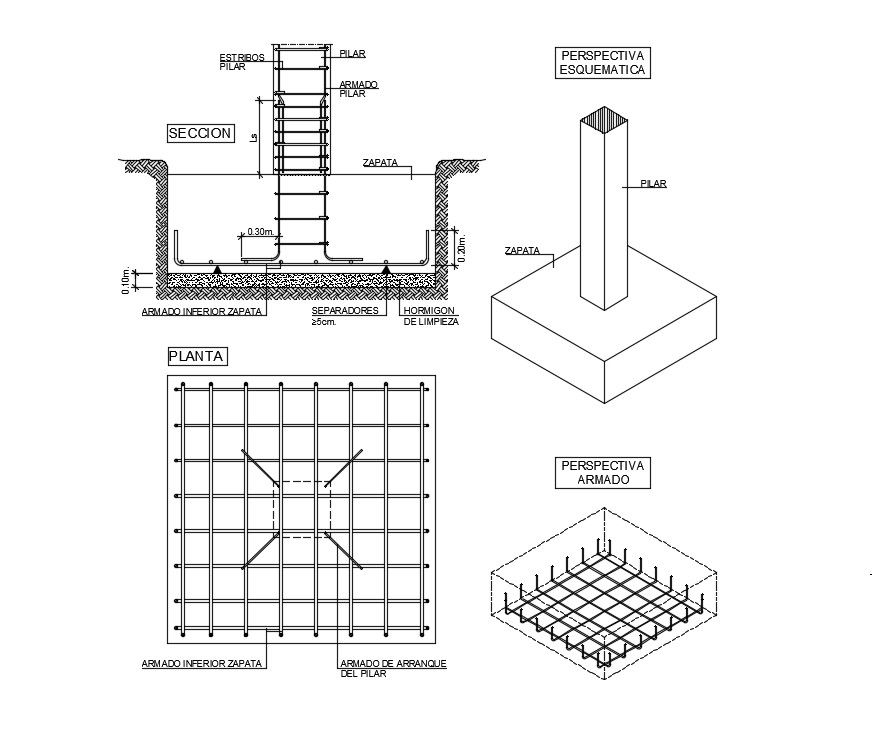 Download Free Concrete Footing Design In AutoCAD File which shows the footing design, plan.