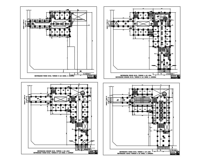 Commercial Building Floor Plan In DWG File which shows the main gate design, door and window, floor level, staircase design.