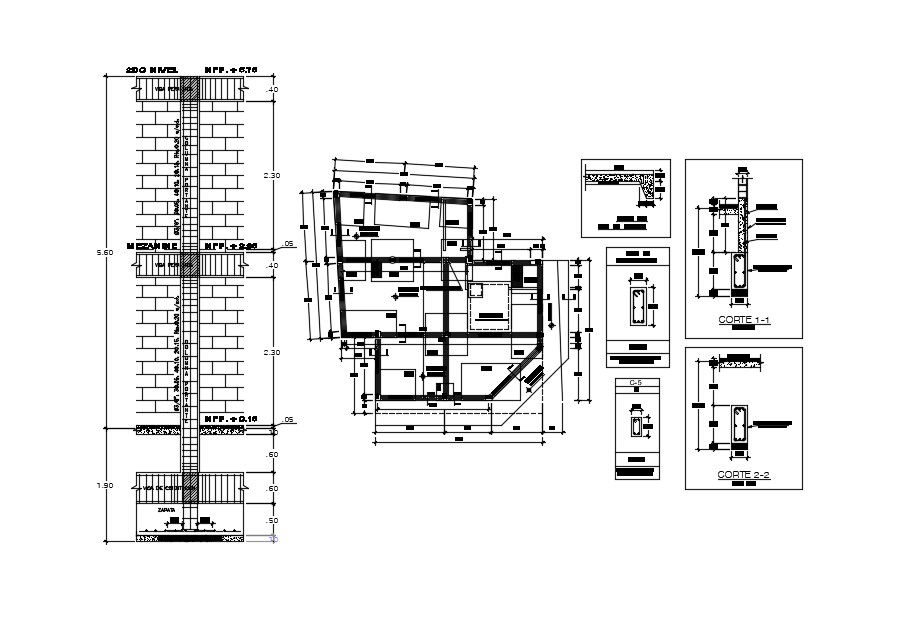 Foundation Plan Drawing In AutoCAD File which shows the wall construction detail, column mounting position, different column view.