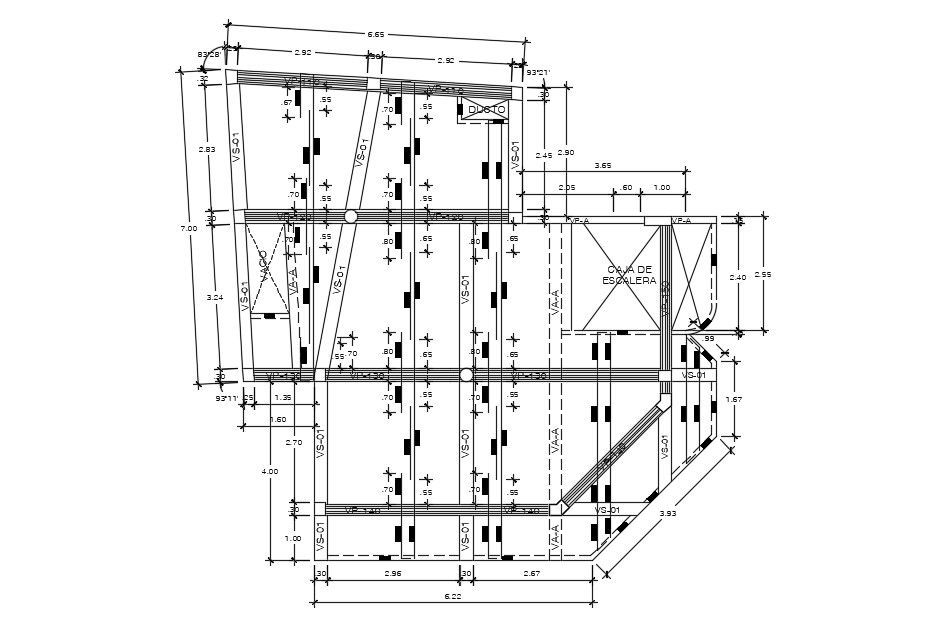 Hostel Structure Plan In AutoCAD File which shows the details of the wall and area view, column view, different sections.