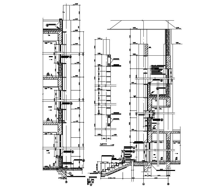 Building Section In AutoCAD Drawings which shows the section details, floor level details.