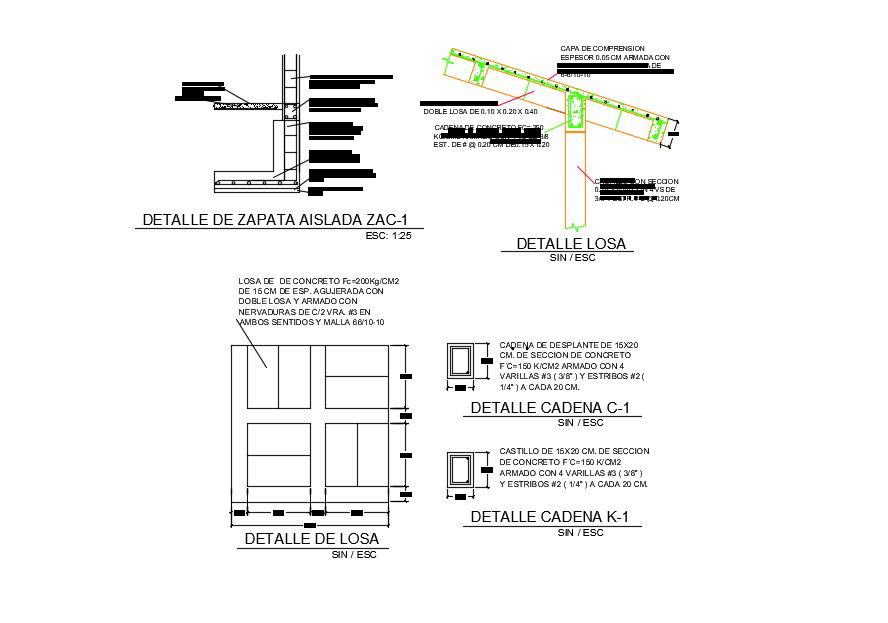 Download Free Isolated Footing Design In DWG File which includes the details of slab design, chain detail.