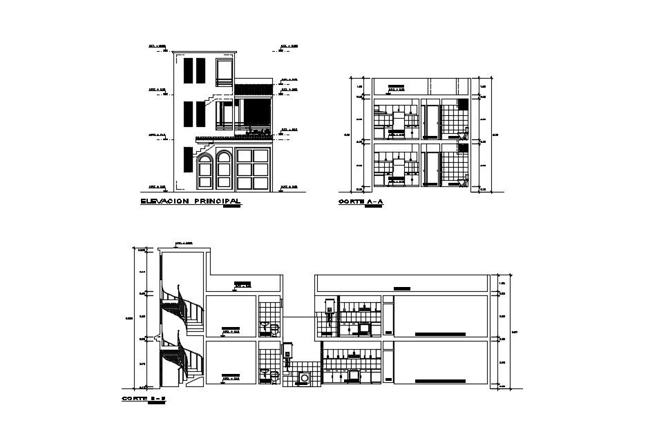 Multi-Family Building Elevation Section In DWG File which shows the details of floor level, wall, door and window view and section view with floor, floor level, door, window and balcony view with necessary dimension.