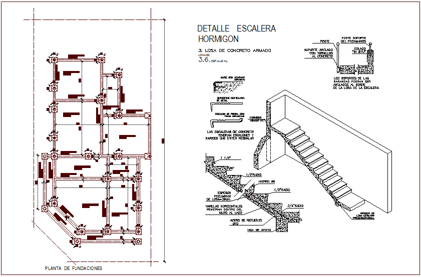 Foundation plan with column detail with construction view for house dwg file in foundation plan with view of area view,wall and column view and different types of section view with stair view with necessary dimension in plan.