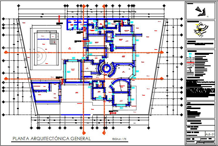 Working drawing of the bungalow. Drawing includes ground floor plan with door window detail, all side dimensions, section line and levels.