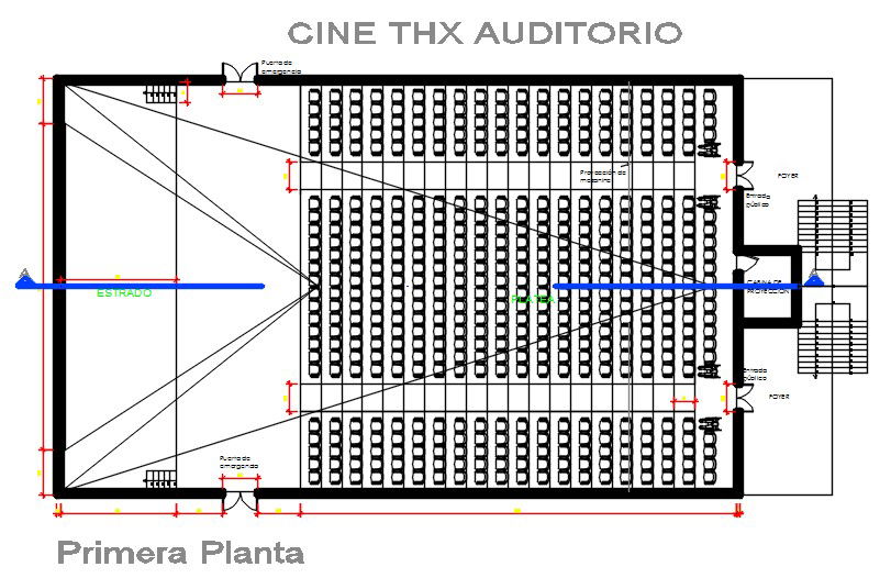 Auditorium plan and section. detail plan and section of the auditorium in dwg file. Plan and section with sitting area design, ramp, foyer, stage area design and etc.