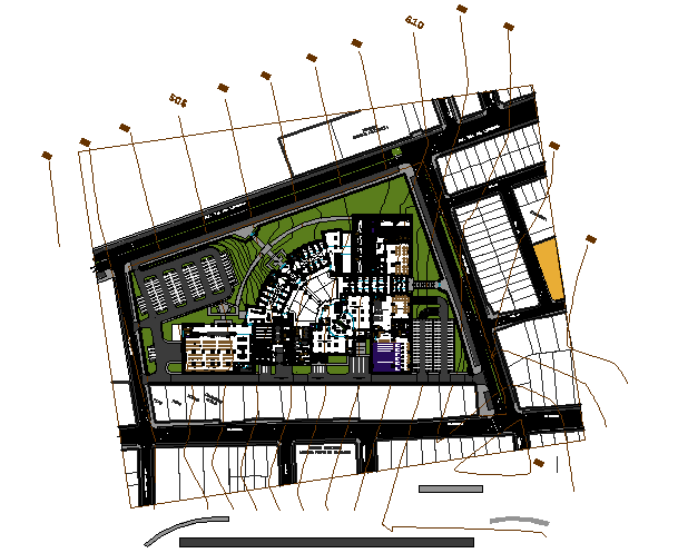 Mega Centro commercial layout plan detail dwg file, including contour line plan detail, landscaping detail with garden detail, etc.