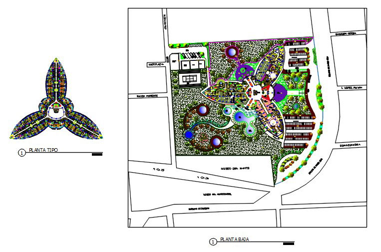 The master plan of a holiday resort. building layout detail with furniture plan, landscaping plan, detail floor plans of the resort, detail of entry, exit, parking, foyer, waiting for the lounge, spa area, reception, restaurant, gym, rooms, and other services.