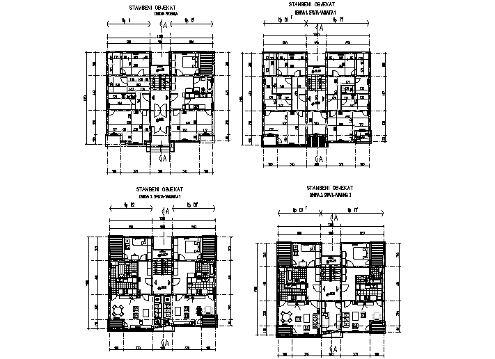 Multifamily layout plan detail dwg file, with dimension detail, naming detail, furniture detail with door, window, bed, chair and table, section line detail, etc.