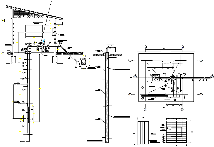 Pump electric detail dwg file, with section line plan detail, roof elevation detail, centre line plan detail, etc.