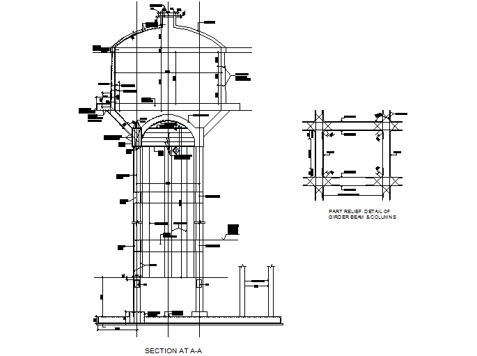 Girder beam and column detail dwg file, with section A-A’ detail and plan detail, dimension detail, naming detail, etc.
