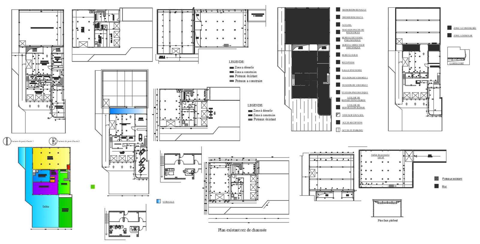 Renault Car Dealer Dwg file. Structural plan, including section line detail, dimension detail, naming detail, leveling detail, etc.