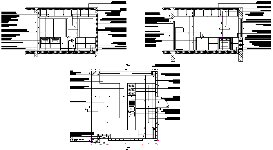 Detailing of kitchen dwg file, with elevation and plan detail, dimension detail, naming detail, stove, sink, cub board detail, section line detail, etc.