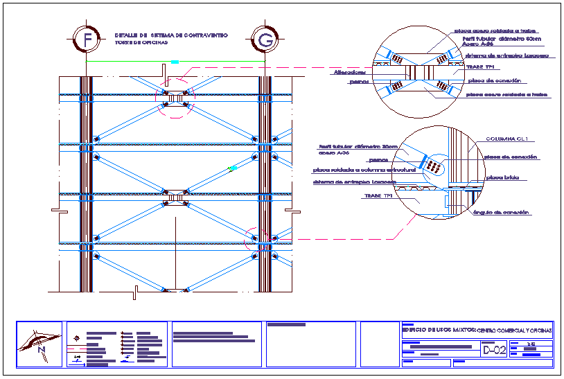 Structural view of office tower construction system for shopping center and office dwg file in elevation with view of wall and wall support view with different joint of tube view