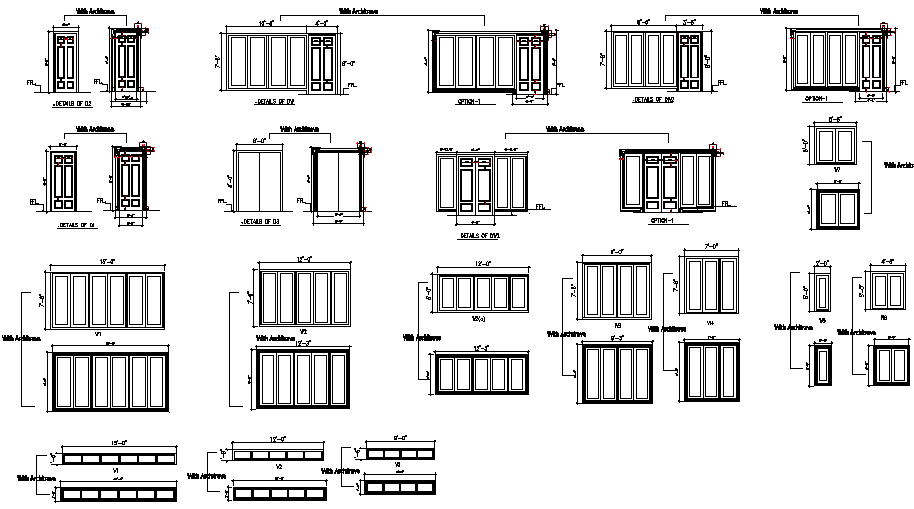 Elevation door framing architect design detail dwg file, with naming detail, dimension detail, leveling detail, etc.