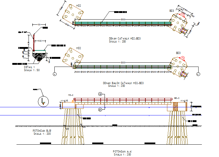Cat walk section detail dwg file, including section line detail, dimension detail, naming detail, etc.