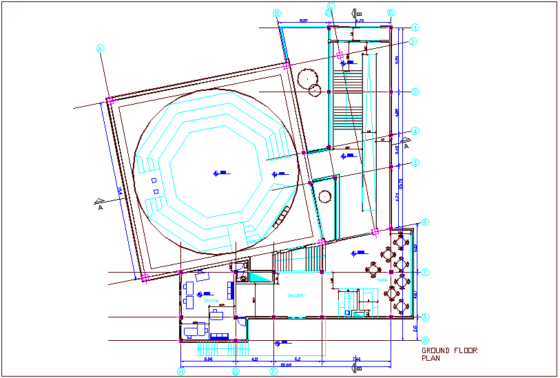 Ground floor plan of multipurpose room of turkey dwg file in plan with view of wall view