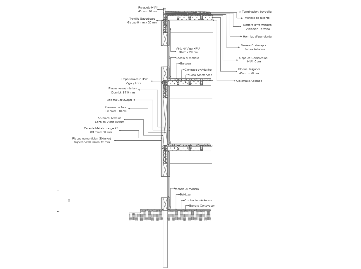 Exterior wall facade--cross section Dwg file. Drawing labels, details, and other text information extracted from the CAD file