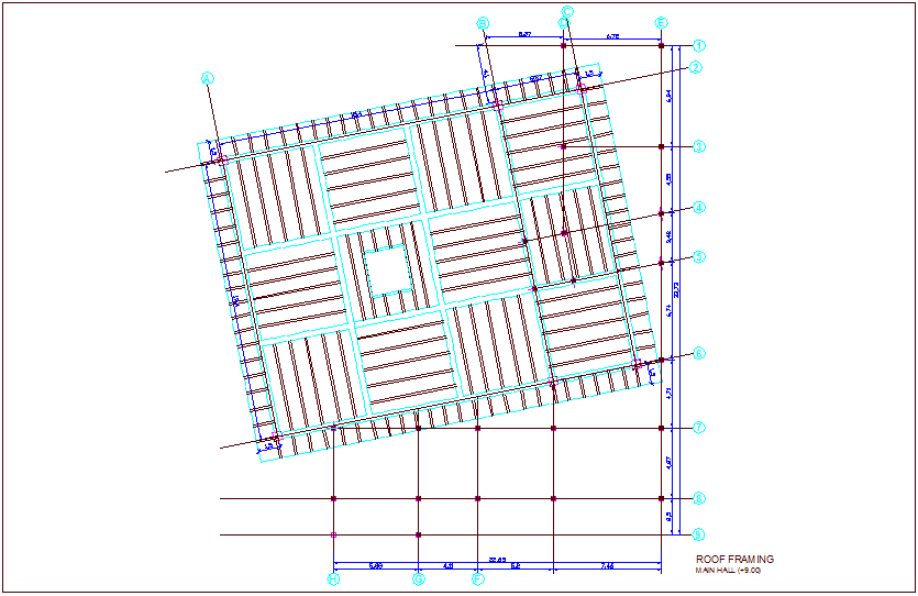Roof framing structure of main hall for multipurpose room of turkey dwg file