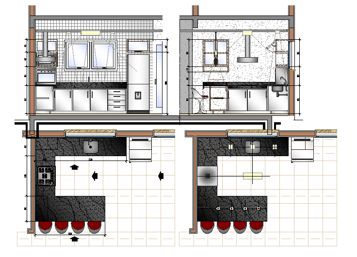 Interior details of a kitchen dwg file, furniture detailing of a kitchen is shown , marble details, cupboards, drawers etc